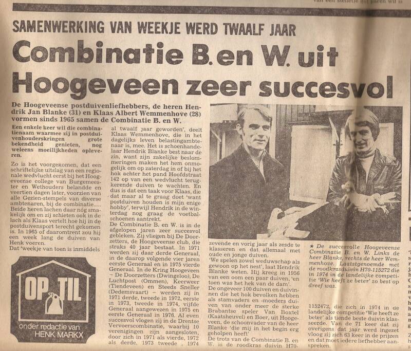 Zaterdag 16 augustus was een bijzondere dag voor onze leden Henk Blanke en Klaas Wemmenhove. Zestig jaar geleden besloten beide mannen te gaan samenwerken en zo ontstond de Combinatie Blanke/Wemmenhove. Tien jaar geleden hebben ze hun naam omgedoopt tot B&W50 en sinds dat jaar ieder seizoen veranderd tot afgelopen seizoen B&W60.